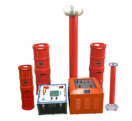 變頻串聯(lián)諧振裝置由變頻電源、激磁變壓器、電抗器和電容分壓器組成。串聯(lián)諧振裝置采用多級疊加的方式,使用的多臺電抗器可以串聯(lián)、并聯(lián)使用,分壓器是用來測量試驗電壓和作為小電容量試品的補償電容的,使得諧振頻率可以在30~300HZ范圍內(nèi)完成多種電力設(shè)備的交流耐壓試驗。